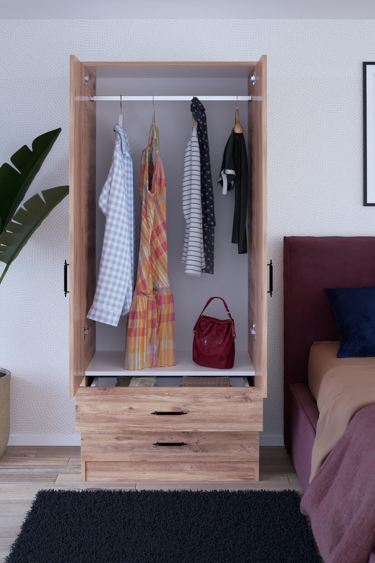 Gubimo Abete-2 Kapılı 2 Çekmeceli Gardırop/Atlantik Çam