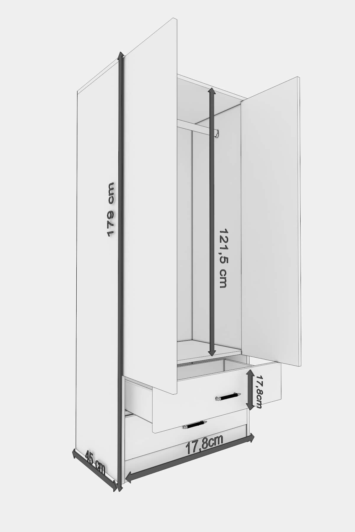 1 Adet 2 Kapılı 2 ÇekmeceliGardırop