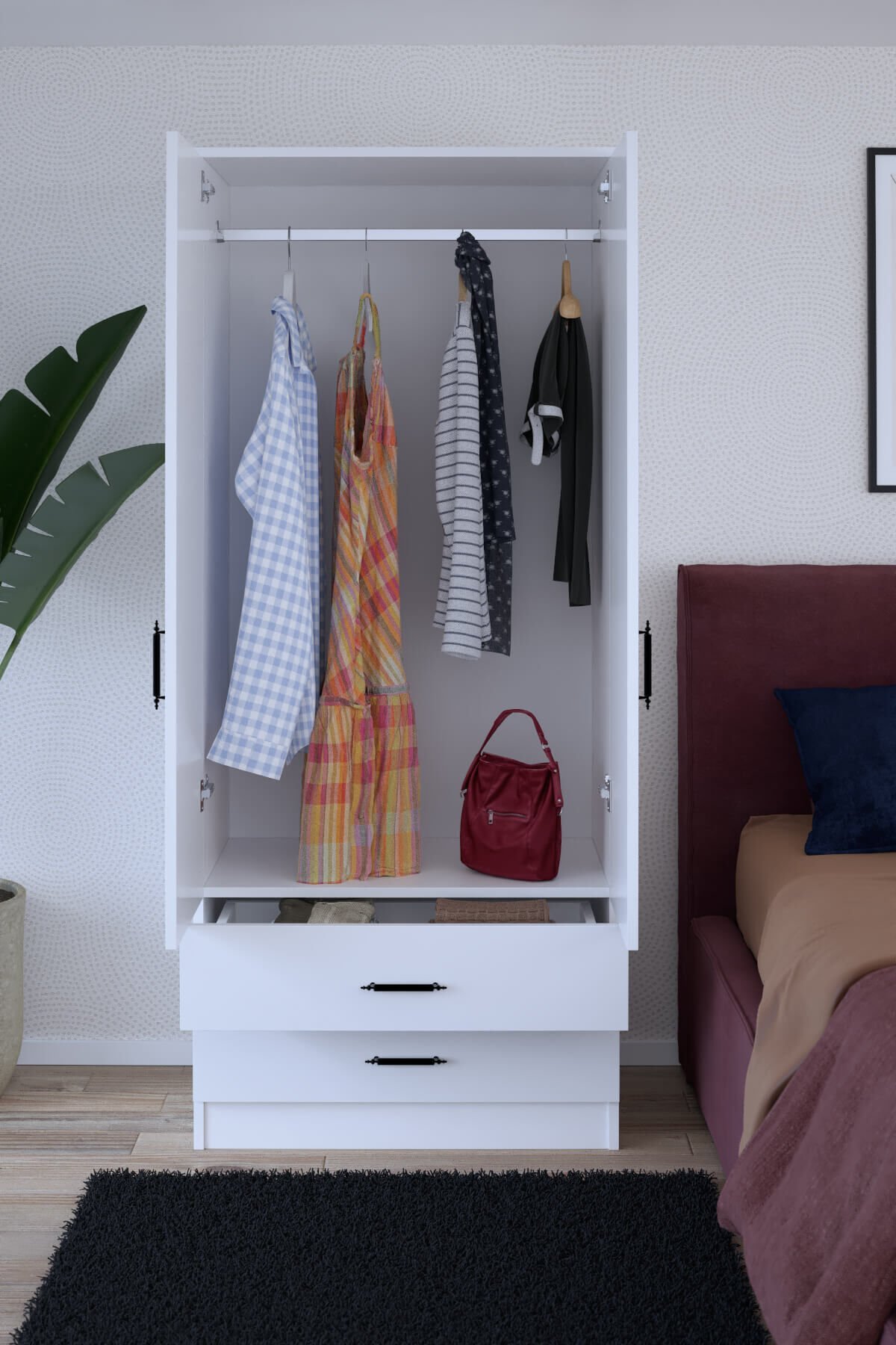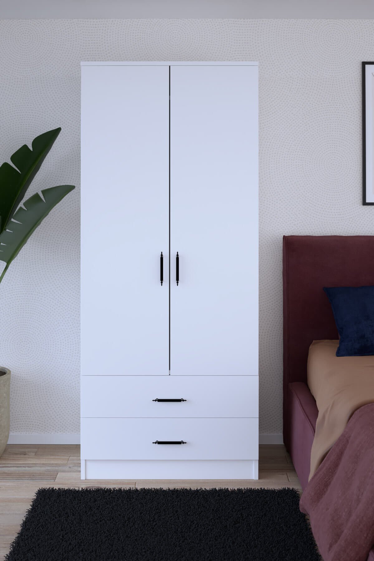 Gubimo Abete-2 Kapılı 2 Çekmeceli Gardırop/Beyaz
