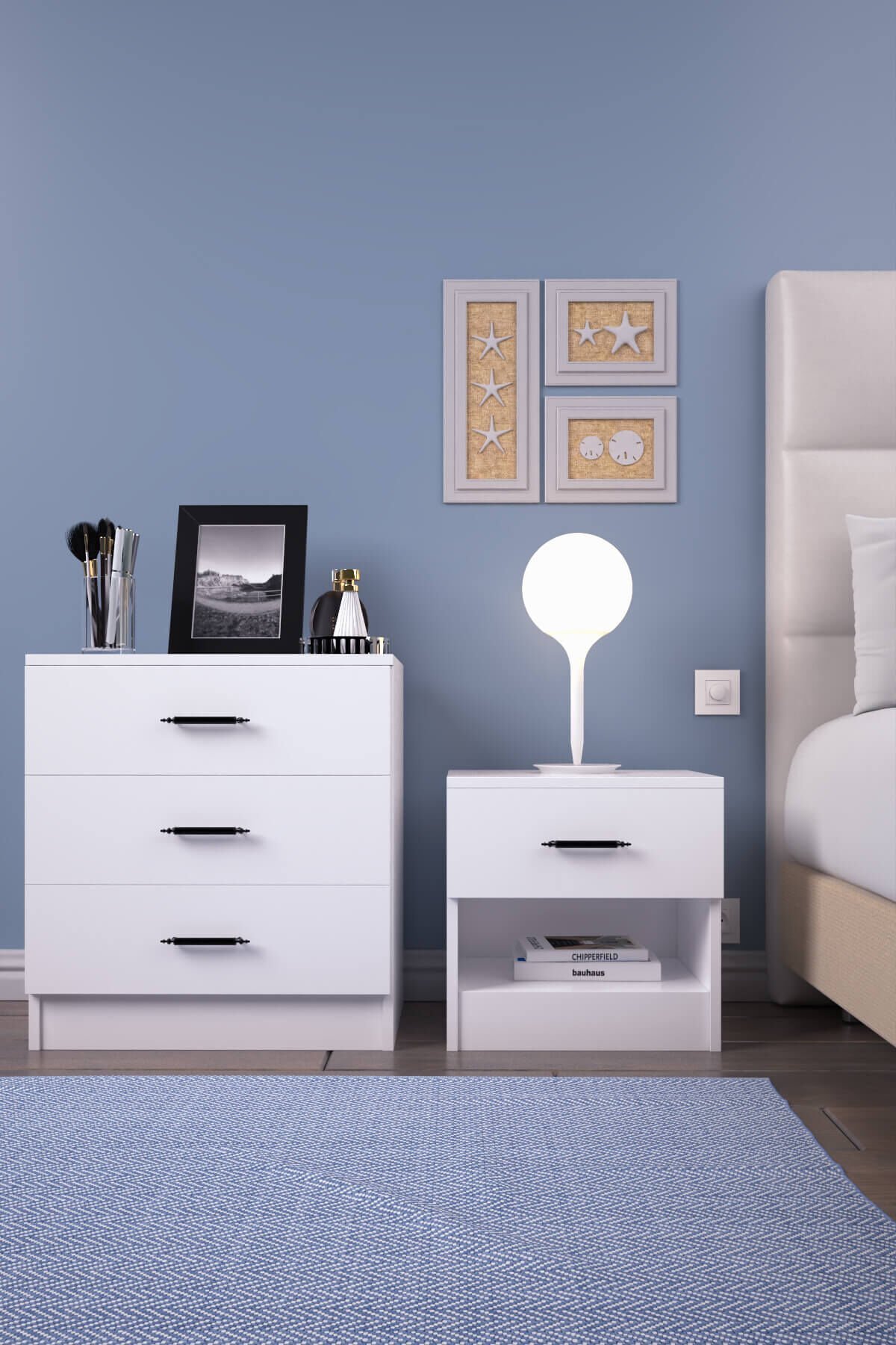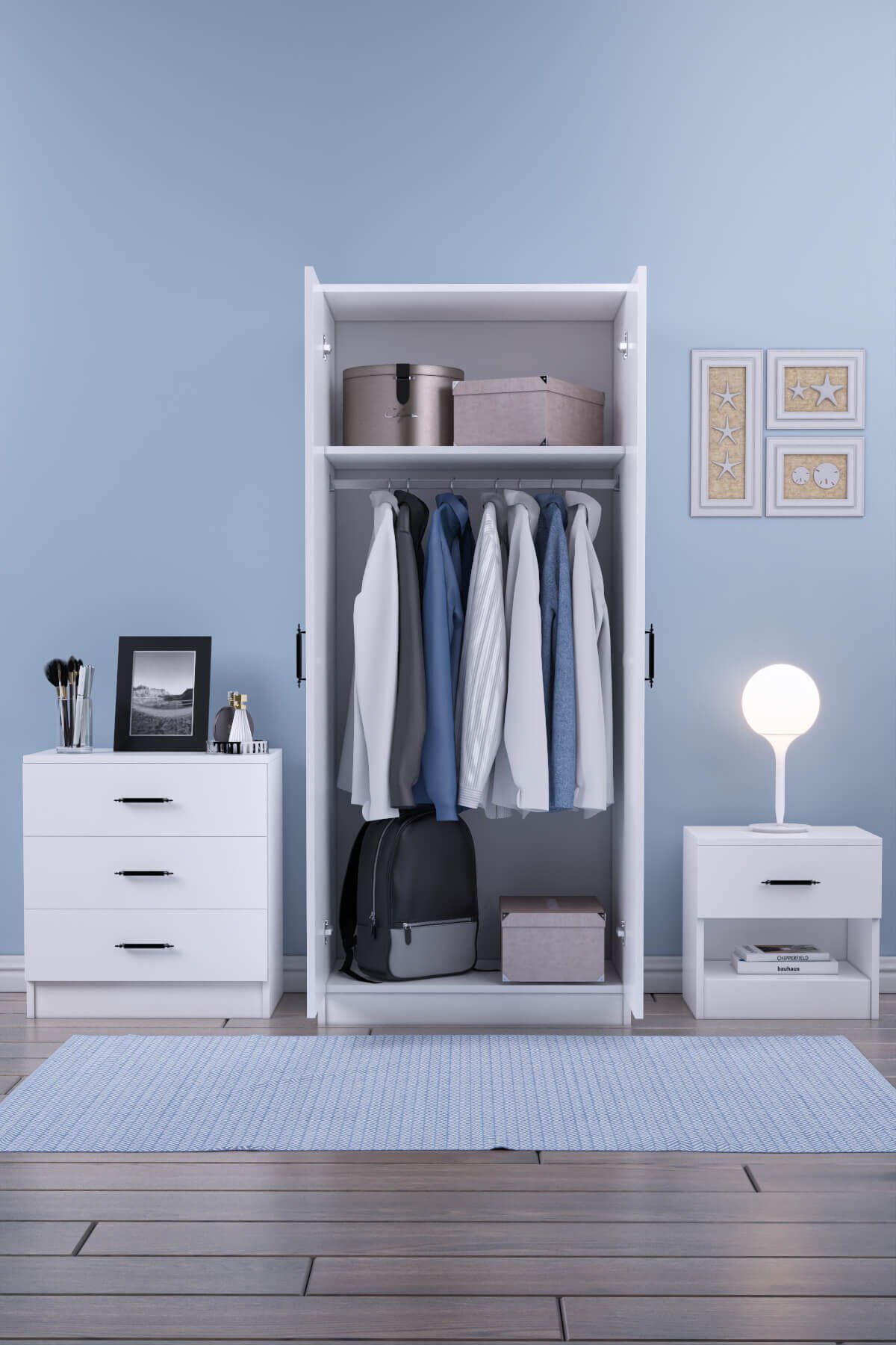 Gubimo Abete-2 Kapılı Geniş Gardırop-1 Çekmeceli Komodin-3 Çekmeceli Şifonyer/Beyaz