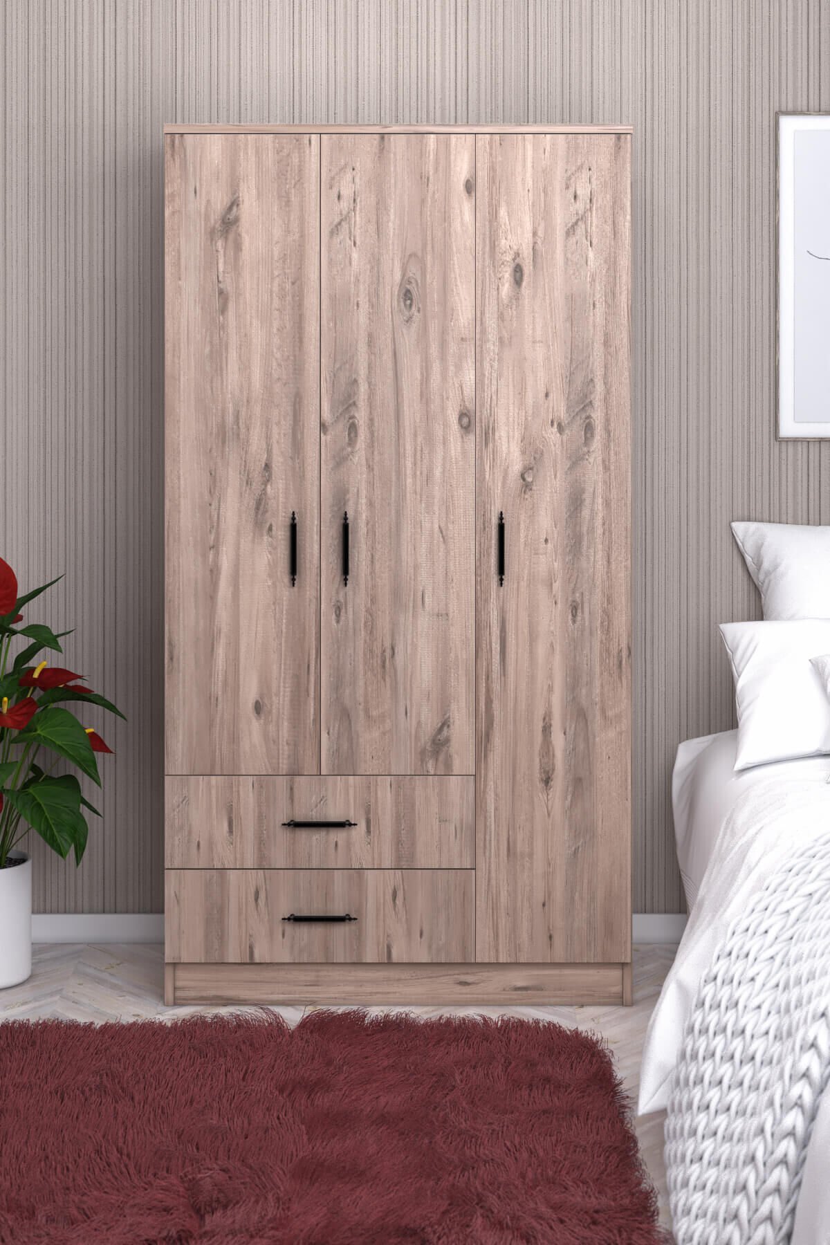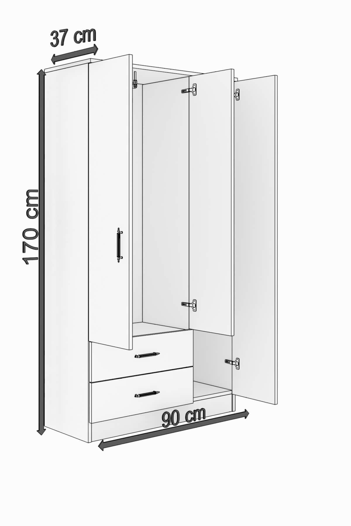 1 Adet 3 Kapılı 2 Çekmeceli Gardırop