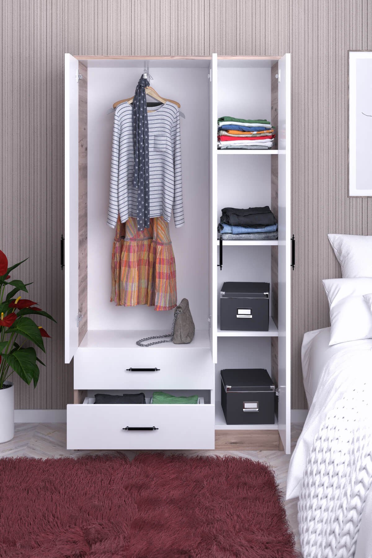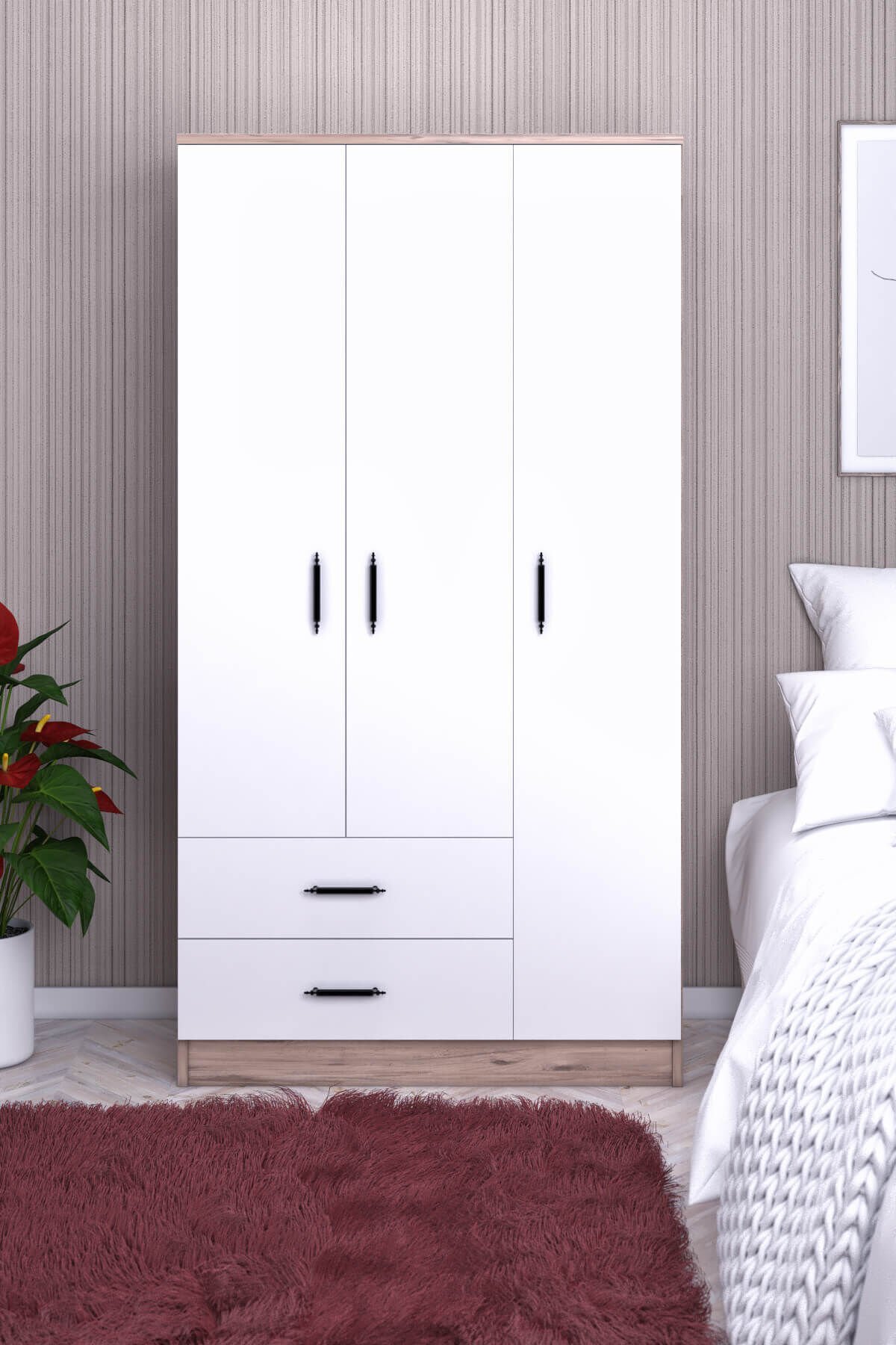 1 Adet 3 Kapılı 2 Çekmeceli Gardırop
