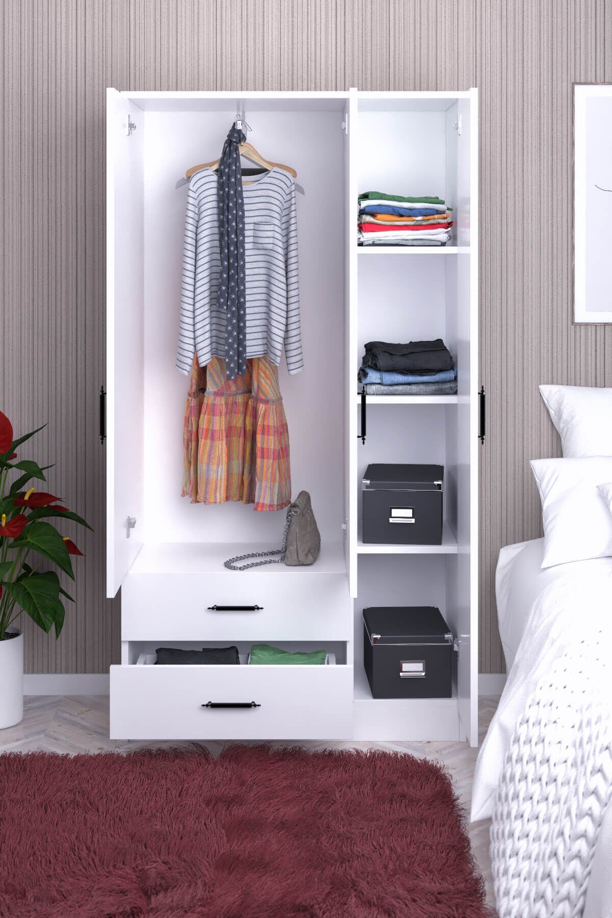 1 Adet 3 Kapılı 2 Çekmeceli Gardırop