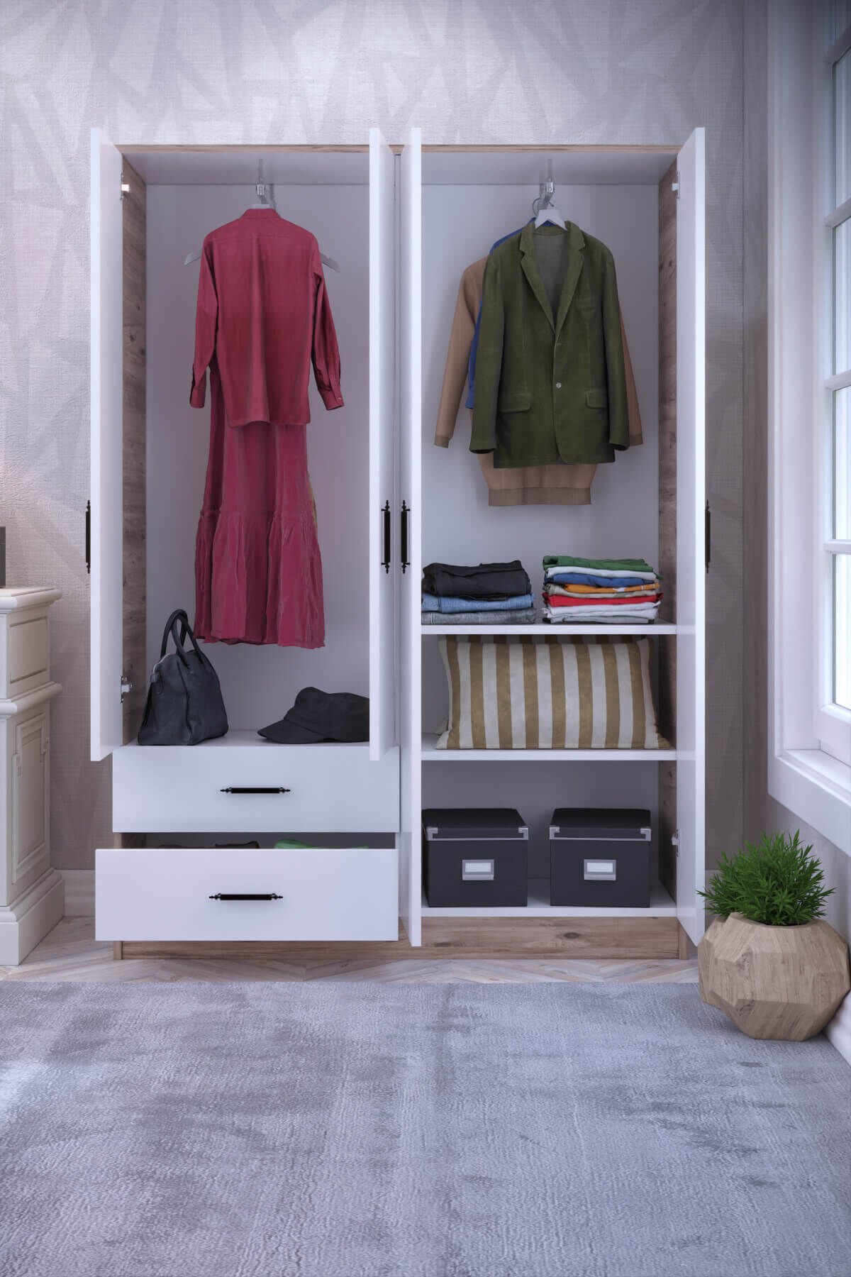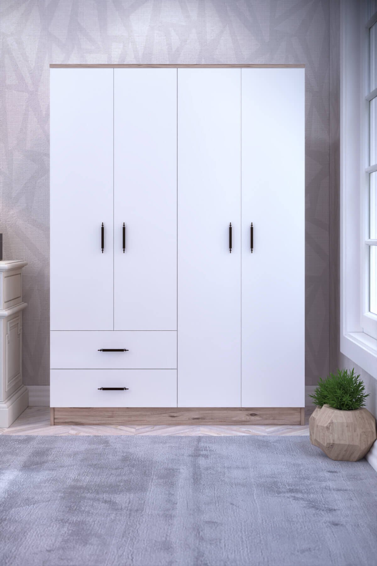 Gubimo Abete-4 Kapılı 2 Çekmeceli 2 Askılıklı Gardırop /Atlantik Çam-Beyaz