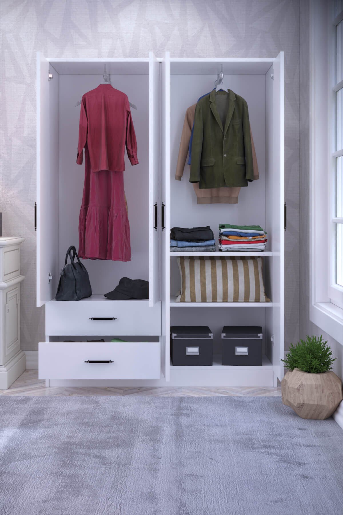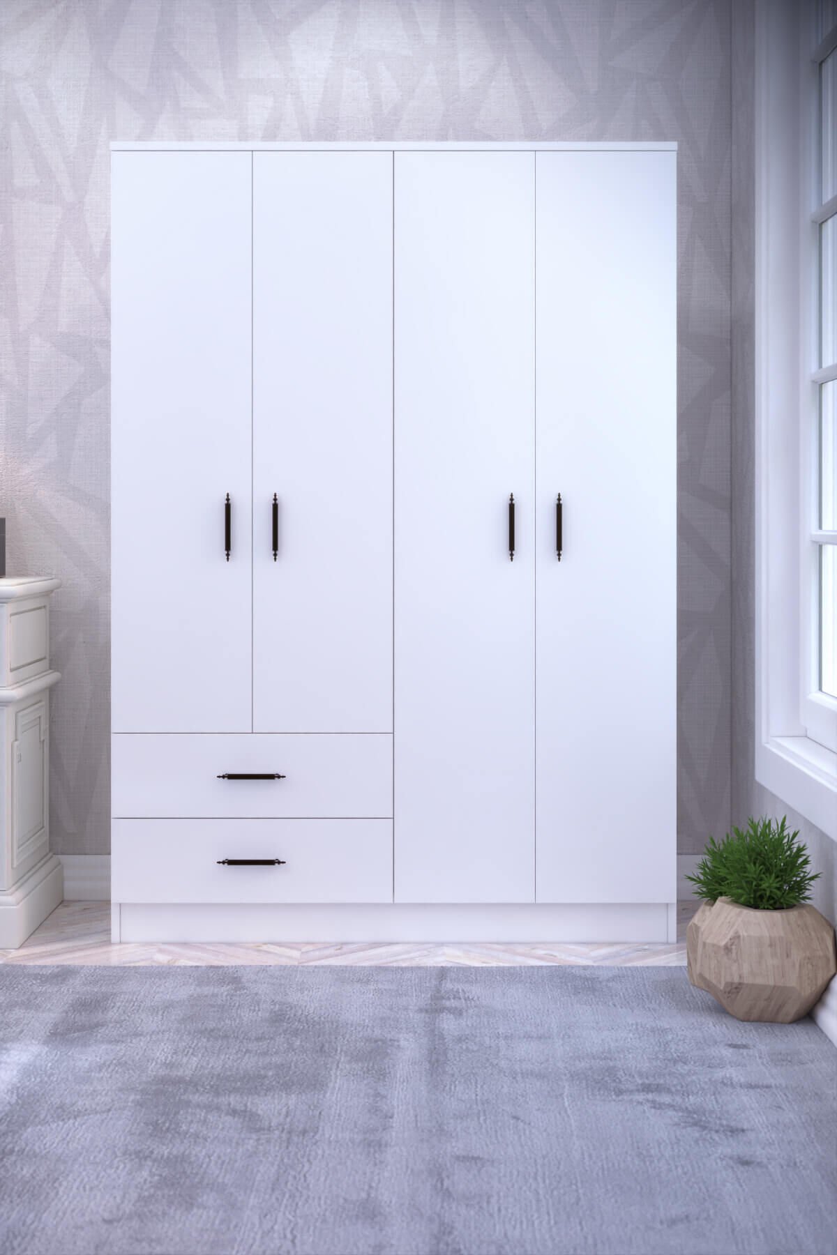Gubimo Abete-4 Kapılı 2 Çekmeceli 2 Askılıklı Gardırop/Beyaz
