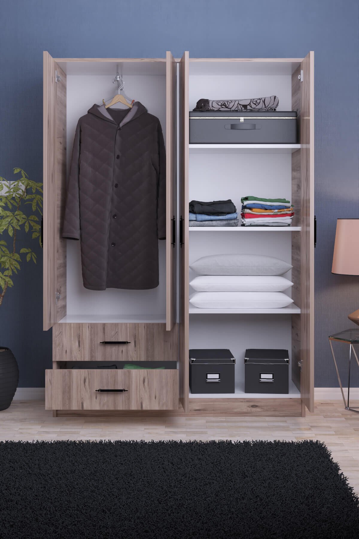 Gubimo Abete-4 Kapılı 2 Çekmeceli Gardırop/Atlantik Çam