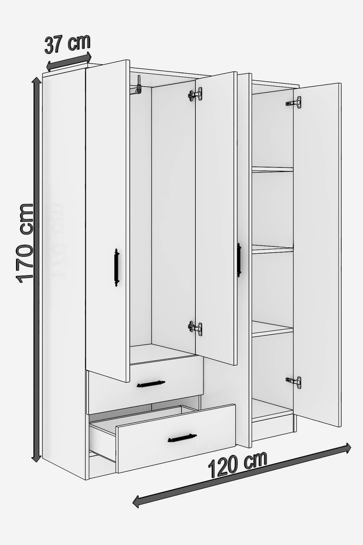 1 Adet 4 Kapılı 2 Çekmeceli Gardırop