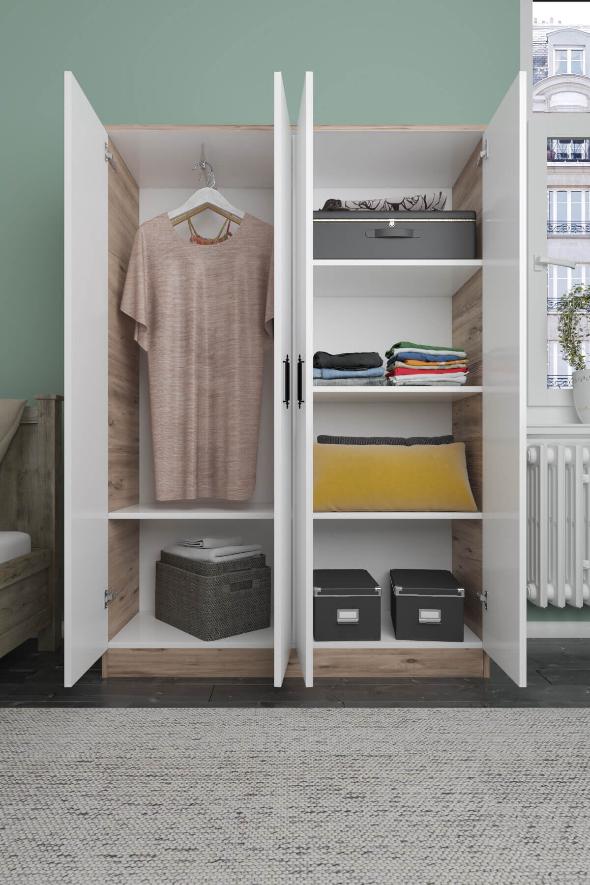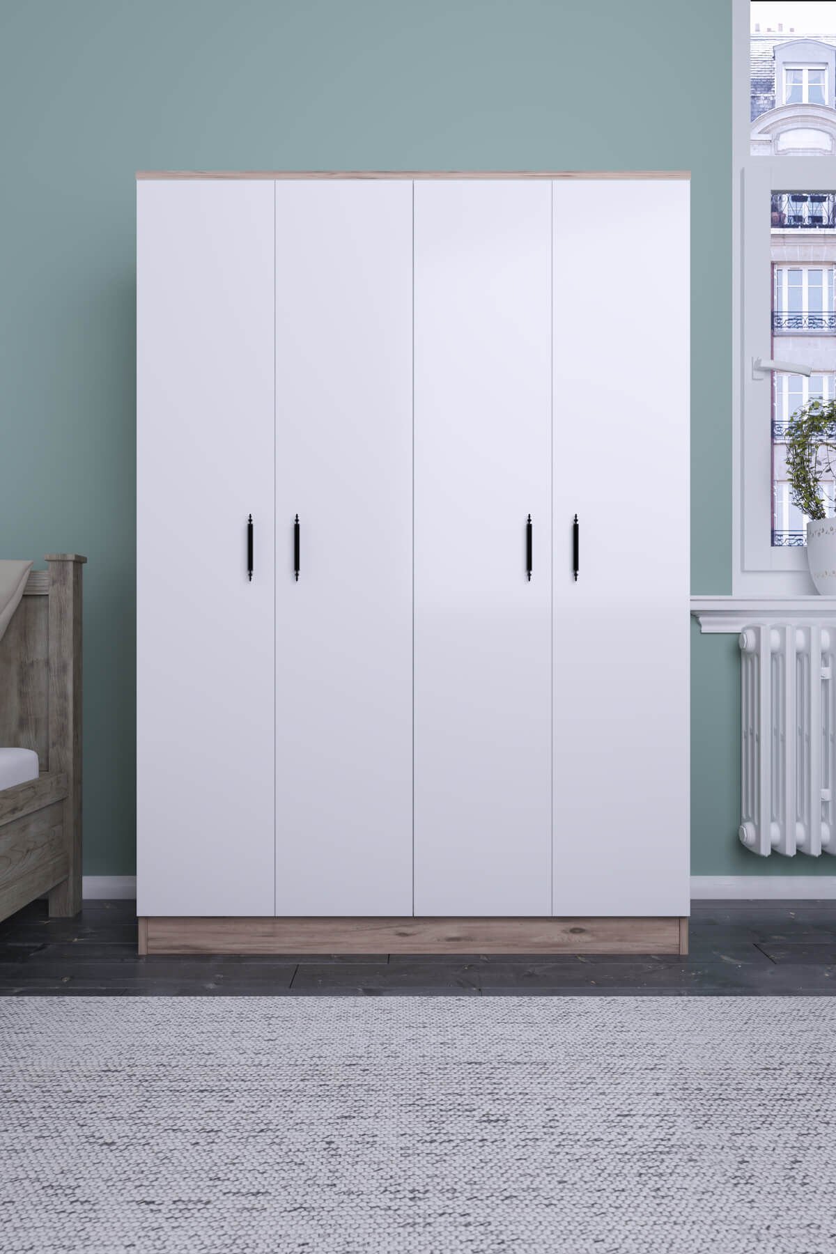 Gubimo Abete-4 Kapılı Çekmecesiz Gardırop/Atlantik Çam-Beyaz