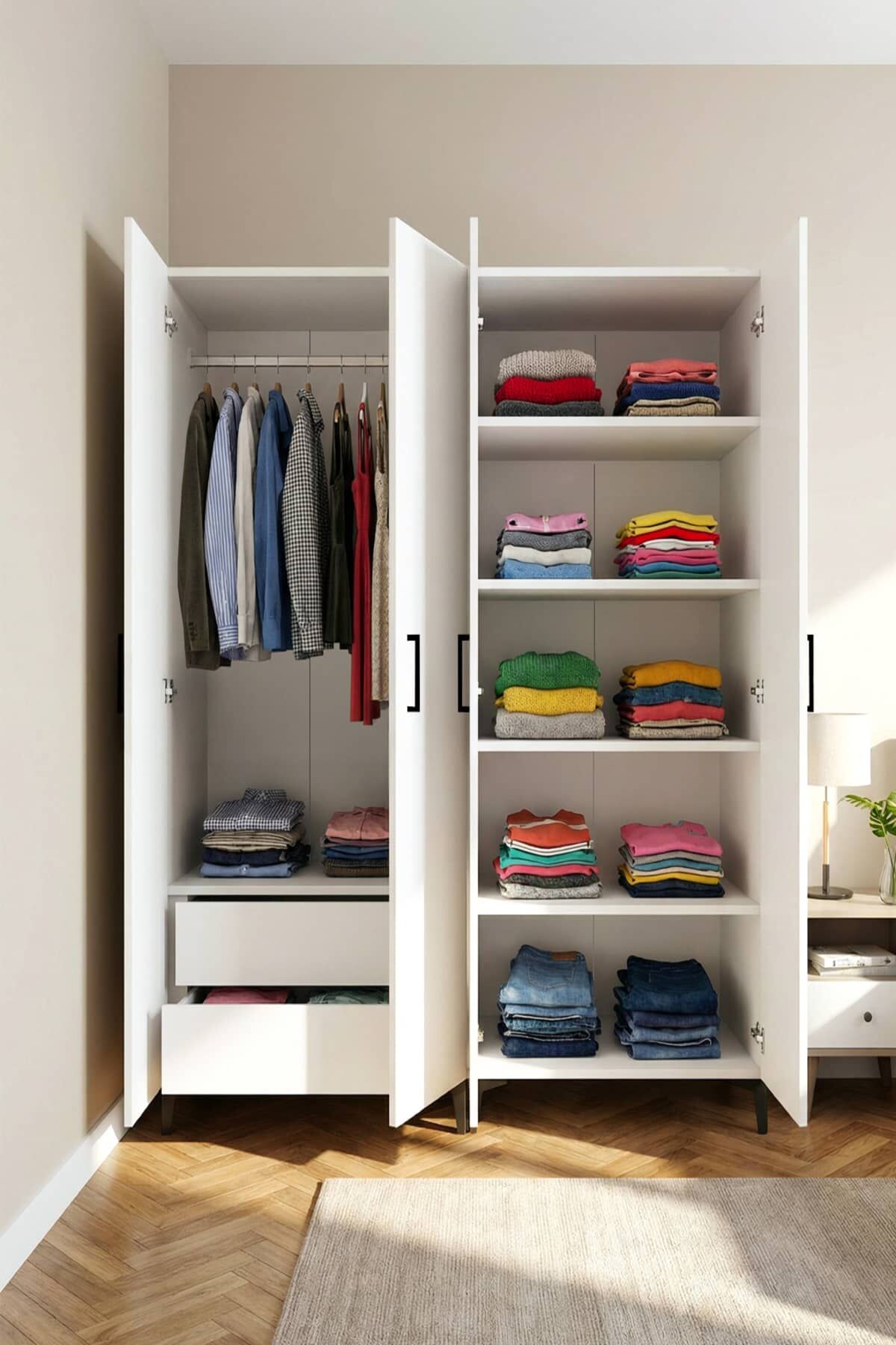 4 Kapılı,4 Raflı,2 Çekmeceli Elbise Dolabı /Beyaz