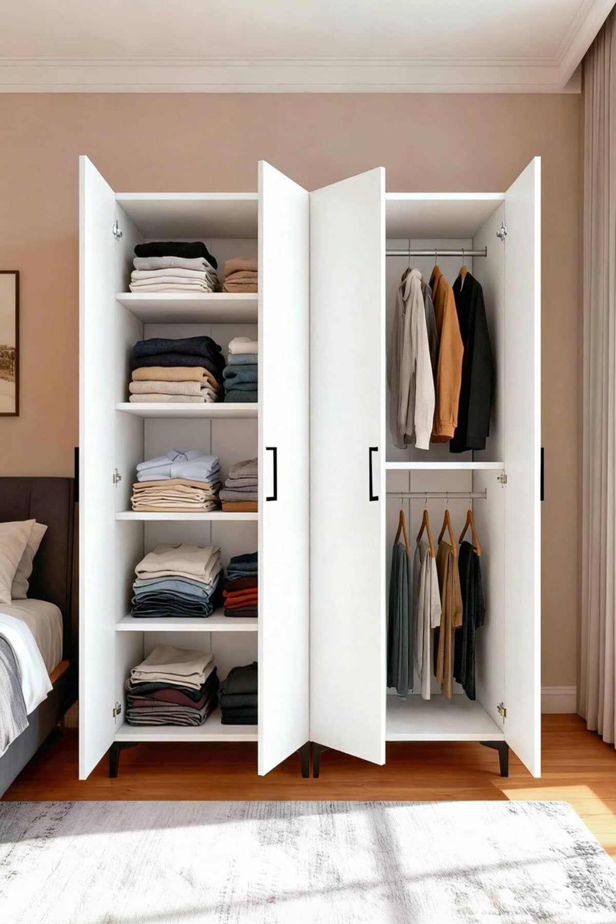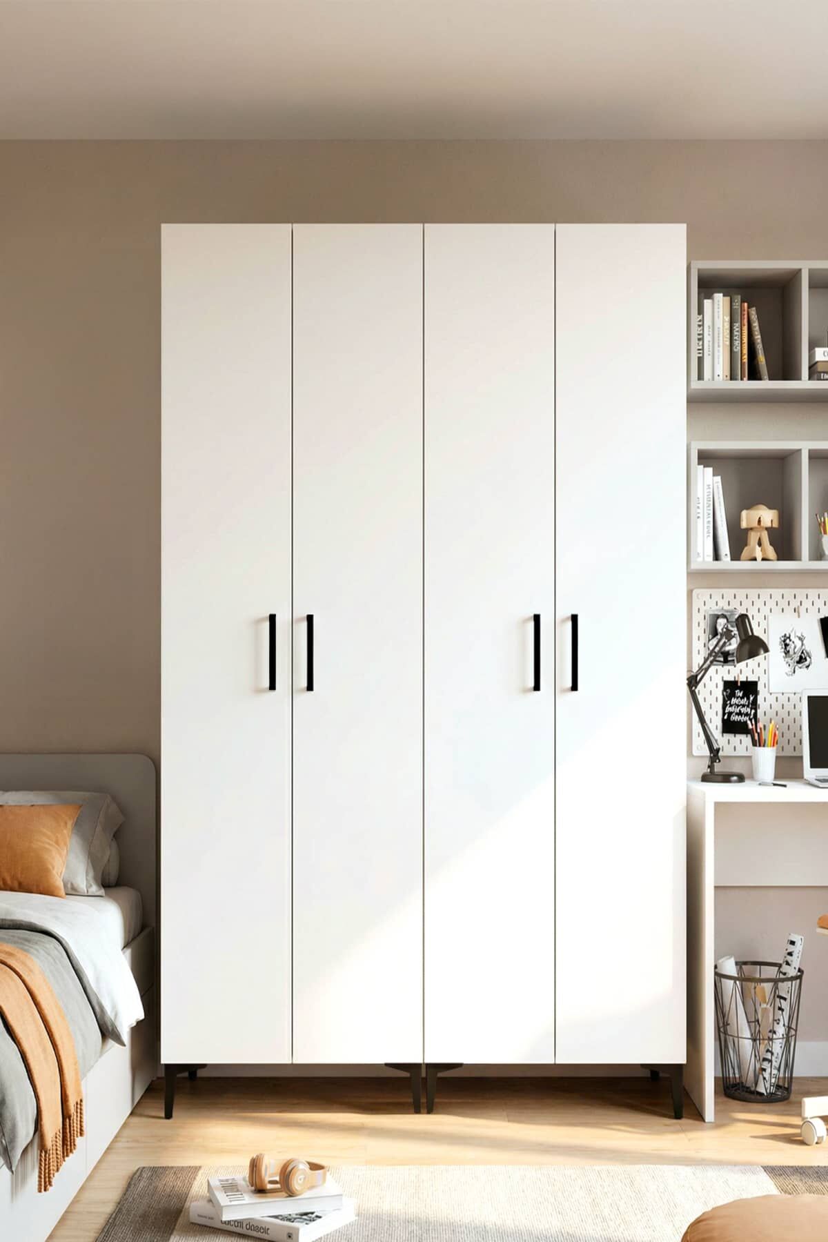 4 Kapılı,,4 Raflı,2 Askılıklı Elbise Dolabı /Beyaz