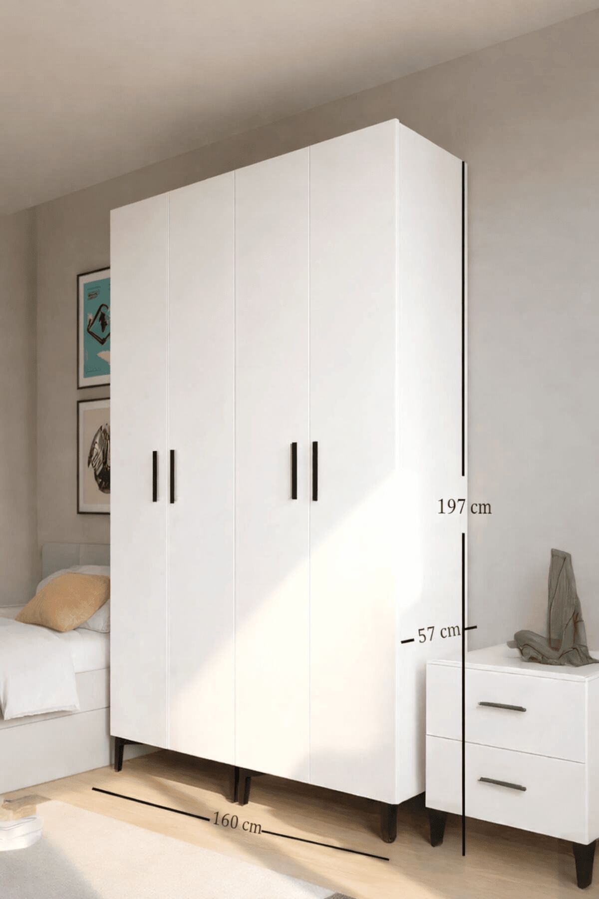 YÜKSEKLİK; 197 CM GENİŞLİK; 160 CM DERİNLİK; 57 CM