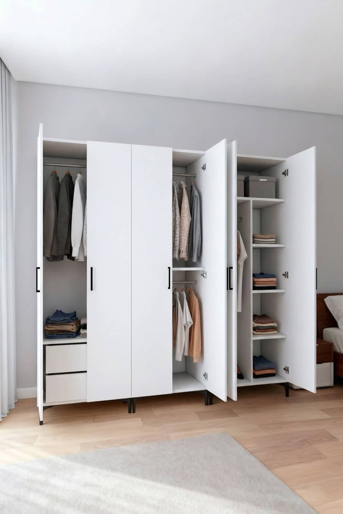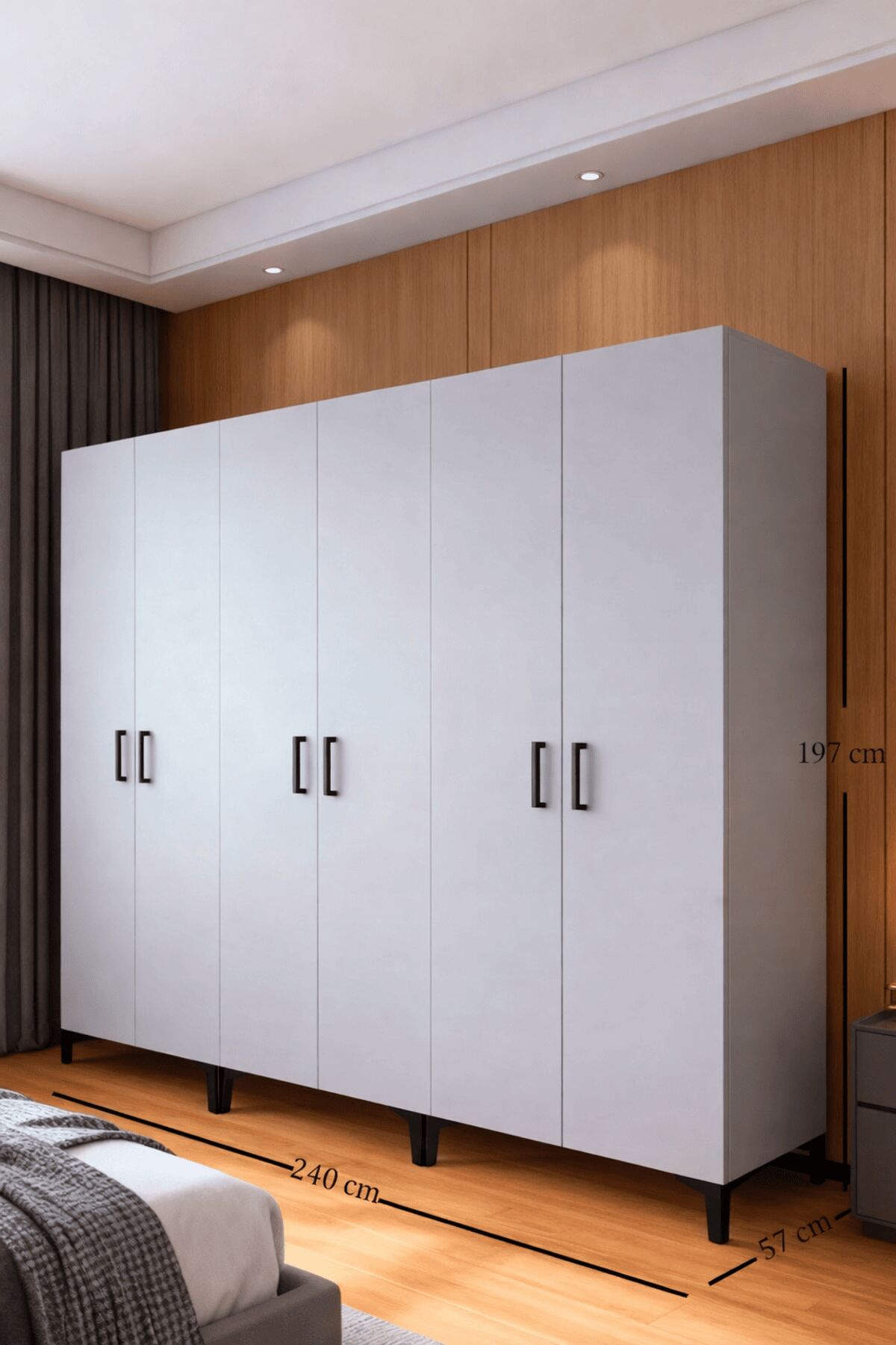 Gardırop 6 Kapılı,2 Çekmeceli,2 Askılıklı,Askı ve Raf Bölmeli Elbise Dolabı /Beyaz